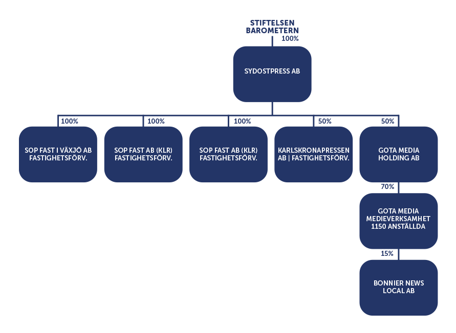 Sydostpress AB är stiftelsen Barometerns ägarbolag som äger 50 procent av Gota Media Holding. Det är Sydostpress styrelse som nominerar chefredaktörer och politiska chefredaktörer till Barometern OskarshamnsTidningen, Smålandsposten och Blekinge Läns Tidning. Sydostpress styrelse nominerar tre styrelseledamöter i Gota Media AB. Stiftelsen Tore G Wärenstams ägarbolag Borås Tidning AB nominerar också tre styrelseledamöter. Tillsammans kontrollerar därmed de två stiftelserna majoriteten i Gota Media AB.